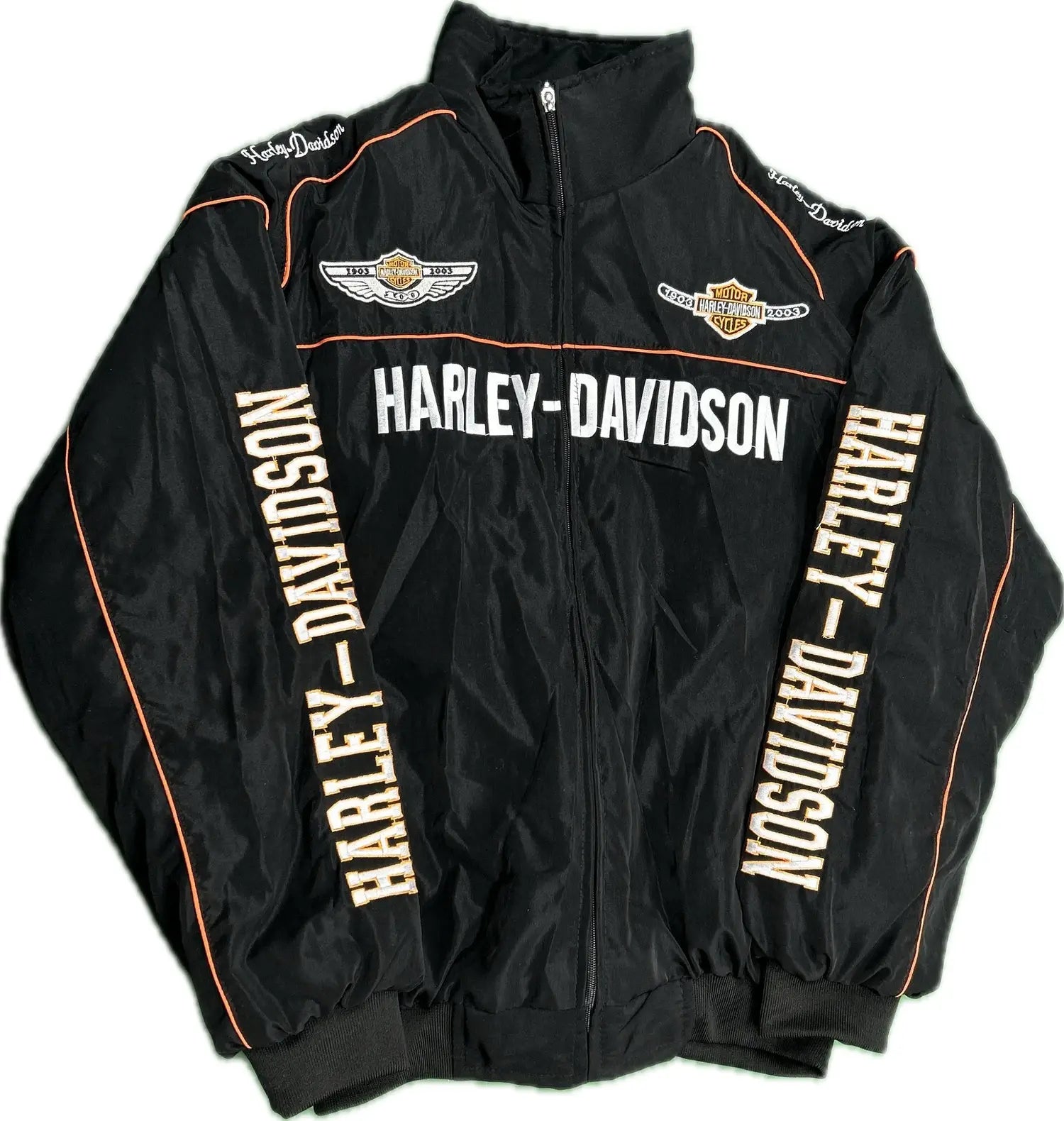 Elevate your style with our limited-edition Harley-Davidson Racing Jacket, proudly crafted in the heart of the United States. This jacket embodies the bold spirit, craftsmanship, and timeless appeal that define Harley-Davidson.